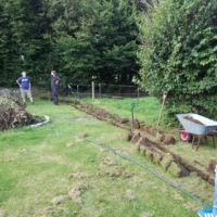Wir haben das Gelände besichtigt und neben dem Entwurf eines groben Lageplans auch bereits die Stromleitung zur späteren Bühne verlegt.